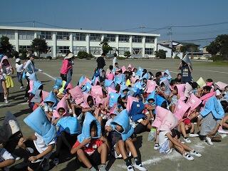 今日のあかまっ子タイムは、全校綱引きの隊形の練習でした。今日は涼しくて、絶好の運動日和。全員元気に練習に参加していました。5年生も、宿泊学習の疲れが残っているでしょうに、良く頑張っています。「不撓不屈」!!