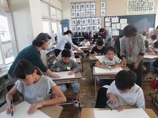 4年生の図工の授業で、彫刻刀の使い方の勉強をしました。講師の先生から丁寧に教えていただきました。ボランティアの皆さんにも、安全を見守っていただきながら教えていただきました。ありがとうございました。