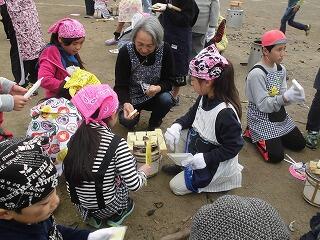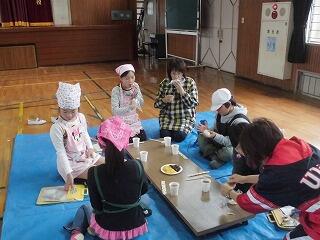 3・4年生が、かまどに薪をくべて羽釜でご飯を炊き、七輪に炭をおこし餅を焼きました。ボランティアのおじいちゃんおばあちゃんに手伝ってもらいながら、なんとか火をおこすことができました。お米は、5年生が田植え稲刈り体験をさせていただいた塚田さんからいただきました。ありがとうございました。羽釜に付いたお焦げのおむすびは最高でした。