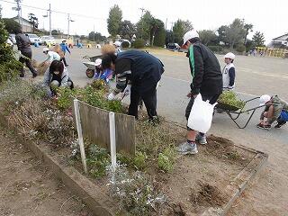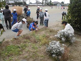 11月10(木)の委員会の時間に、環境委員の子供たちと地域ボランティアの方々で、花壇の除草整備を行いました。月末には、環境委員とボランティアの方で、パンジーやスノーポールを植える予定です。
