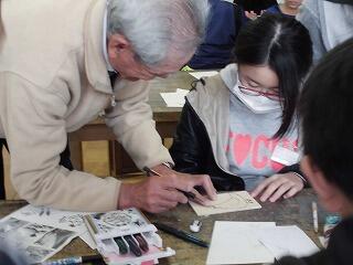 多色刷り版画家の鈴木さんをボランティア講師としてお招きして、多色刷り版画の体験に取り組みました。本日11月11日(金)はまだ、下絵の段階でしたが、構図、配色など丁寧にご指導いただきました。年賀状に間に合うように仕上げていきたいと思います。鈴木さんありがとうございました。掘りや刷りでもご指導よろしくお願いします。