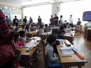 最初に家族授業参観を行いました。平日だとなかなか参観に来られないお父さんや祖父母の皆様も数多く来校していただきました。