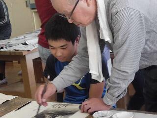 6年生が水墨画体験をしました。
