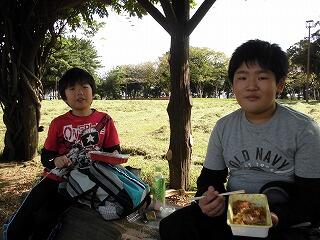 港公園での昼食です。おうちの方のおいしい弁当に、思わず顔もほころびます。
