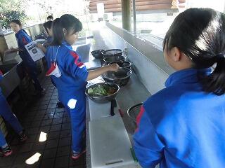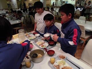 初めての海浜自然の家での食事です。食事係を中心にバイキングで形式でいただきました。