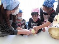 活動では、子ども達が一生懸命にサツマイモをこねたり、容器に丁寧に盛りつけたりすることができました。また、親子で楽しくお話ししながら活動している姿が見られました。