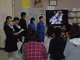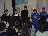 DVDの映像を使って学校生活について説明をしたり、実際に着てきた制服や運動着について細かく説明したりと、とても丁寧にわかりやすく話してくれました。また、グループ別になり質問にも答えてくれました。6年生は、抱いていた部活や授業、宿題や強化等についての心配や不安が解消され、中学生活が楽しみになったようです。
