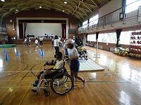 6/18(木)に、福祉出前体験学習を行いました。体に重りをつけたり、車いすを押したりしながら、お年寄りと同じ気持ちを体感しました。普段当たり前のようにやれていたことが、お年寄りにとっては難しいということを、体験的に理解できたと思います。