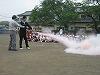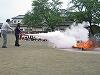 初期消火訓練の様子 大きな声で「火事だー」みんなに知らせてから、落ち着いて消火しました
