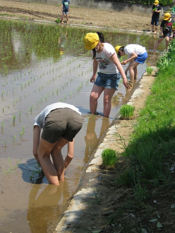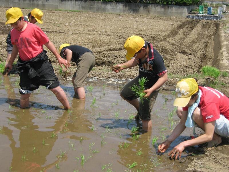 子どもたちは土の感触を感じながら、楽しく田植えすることができました。