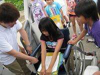 高齢者について学習をしています。1学期は、インターネット資料や高齢者介護施設職員の話、市健康福祉課職員の話から、高齢者について学びました。また、市の社会福祉協議会職員の協力で、高齢者疑似体験や片麻痺体験、車いす体験を行い、高齢者の気持ちや思いを考えました。2学期は、高齢者に自分たちができることを考え、地域のおじいちゃんおばあちゃんたちに発信していく予定です。