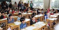 4月9日に入学した1年生27名が元気に毎日生活しています。 10日には、駐在所の髙橋さんをお迎えして交通安全教室を行いました。また、初めての給食を、校庭でみんなで円くなり食べました。先週1週間は、緊張して毎日、疲れたことと思いますが、今日も全員元気にお休みなく登校しています。