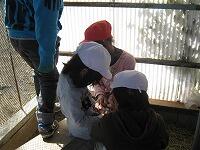 1年生が、手のひらサイズのうさぎをそっとだっこしました。