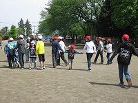 6年生が1年生のために考えた遊びは、「手つなぎ鬼ごっこ」。