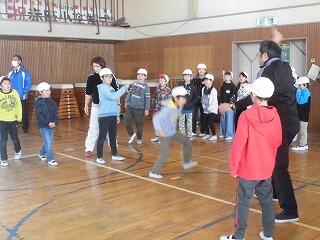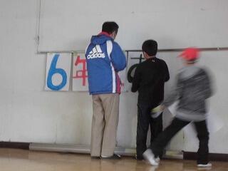 本日昼休みに体育教室を行いました。「ボールを運ぼう」ということで、頭の上からボールを送ったり、股の下からボールを送ったり、体をひねってボールを送ったりして、どのグループが速くボールを送れるか競争しました。全部で4回競争しましたが、なんと1年生中心のチームが4回のうち3回勝ちました。とても素早い動きでした。