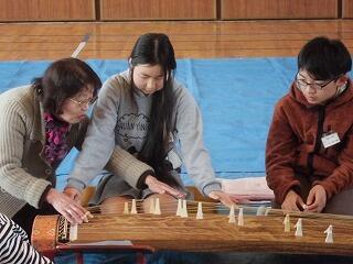 今日の2・3校時に、1年生が昔遊びをしました。1年生のおじいさんおばあさんや地域ボランティアの方々に教えてもらいながら、「輪投げ」「けん玉」「メンコ」「コマ回し」「なわとび」「竹とんぼ」「羽子板」「ベーゴマ」「ヨーヨー」「お手玉」「おはじき」「あやとり」で遊びました。なかなか難しいようでしたけれど、子供はコツをつかむのが早く上手にできるようになったものもありました。