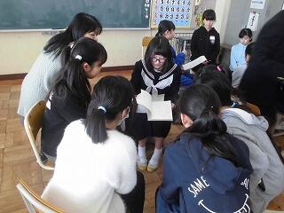 その後、合奏を披露したり、心のこもった手紙を読んだり、プレゼントを渡したりして、今までの感謝の気持ちを伝えました。吉成先生がつくった6年間の思い出の写真を見ました。懐かしい気持ちとともに大きく成長したことを実感しました。
