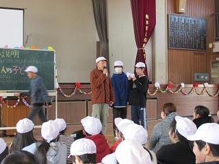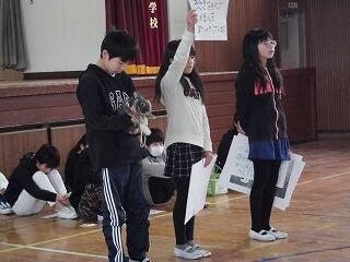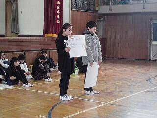 今日のあかまっ子タイムに表現活動を行いました。2年生がインフルエンザによる学年休業中だったので、全校で集まることはせず、保護者と学校運営協議会委員と一部の教師の前での発表となりました。