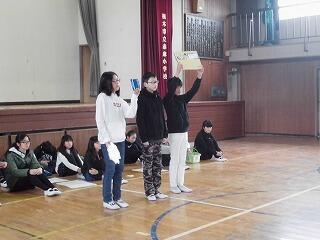 赤麻小では、学校生活をよりよくするために、8つの委員会を組織して、6年生を中心に、4~6年生が活動しています。今日のあかまっ子タイムの時間に、一年間頑張ってきた活動を6年生が全校児童に発表しました。各委員会の活動の様子を全児童が理解することができました。どの委員会も素晴らしい活動に取り組んできたことをあらためて感じました。詳しい活動の様子が昇降口入ってすぐの廊下に掲示してありますので、来校したときにはぜひご覧ください。今後も全員で協力して素晴らしい赤麻小学校にしていきましょう。