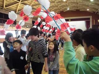 6年生を花のアーチで送りました。花のアーチは4年生が担当しました。