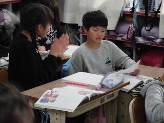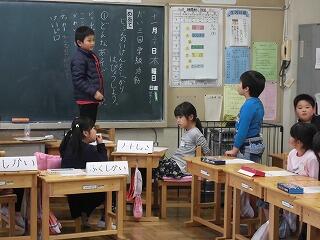 次に代表児童による作文の発表がありました。餅つきなど伝統行事に参加したり、貴重な体験をしたりした思い出や算数や縄跳びを頑張りたいというめあてをしっかり発表することができました。