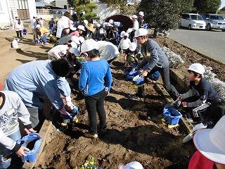 本日昼休み、学校支援ボランティアの5名の方々と環境委員会で協力して、花壇にデイジーの苗やチューリップの球根を植えました。前回もボランティアの方々に協力してもらい花壇の土作りを行っていたので、今日は、腐葉土を少し入れてすぐに植える作業に取り組めました。おかげで、赤麻小の花壇が見違えるほどきれいになりました。春にはきれいなチューリップのはなが咲くのが楽しみです。