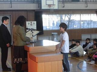 最後に、冬休み中に行われたマラソン大会に意欲的に参加し、優秀な成績を収めた児童の表彰を行いました。