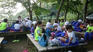 すがすがしい秋晴れのもと、1・2年生がとちのきファミリーランドに校外学習に出かけました。お兄さんお姉さんの2年生がリーダーシップをとり、1年生の面倒を見ながら、楽しい時間を過ごしました。昼食をはさんで、午前午後とも乗り物を満喫しました。その後、ドングリや落ち葉を拾い、様々な秋を見つけることができました。