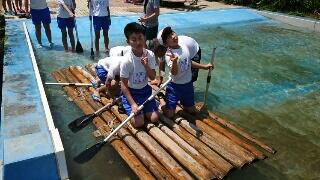 いよいよこぎ始めます。4人ずつ乗ります。なかなか思った方に行けません。