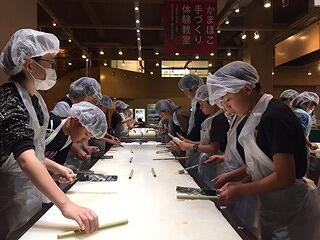 鈴廣かまぼこ博物館で、かまぼこづくりの体験活動をしました。みんな自分で作るのは、初めてです。おいしくできるといいな!