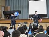 24日は、あいにくの雨模様でしたが、3・4年生が、体育館で自転車の安全な乗り方について学びました。子供たちは、駐在さんの自転車の乗り方の迫真の演技をよく見て、質問に答えながら、正しい自転車の乗り方をしっかり学ぶことができました。