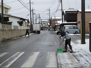 子供たちが安全に登校できるように、職員は、朝、雪かきに奮闘しました。
