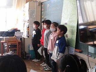 1年生は、ボランティア感謝会で振り付けをつけながら、「おもちゃのチャチャチャ」を歌いました。元気に大きな声で歌うことができました。最後に、感謝の言葉を全員で呼び掛けました。ボランティアの方から、多くの拍手をいただきました。