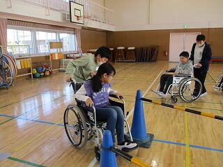 18日の点字に引き続き、車椅子体験では、介助者の役目も体験しました。今回の福祉の学習では、目の見えない方や体の不自由な方の生活や思いなども学ぶ貴重な体験ができました。ありがとうございました。