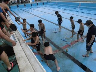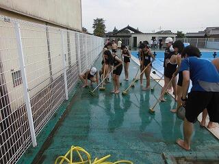 去年の8月からそのままになっていたプールを6年生がきれいに掃除してくれました。底にたまった土を取り除き、床をきれいに磨き、側面もきれいに仕上げてくれました。掃除する前とは見違えるほどきれいになりました。6年生ありがとうございました。