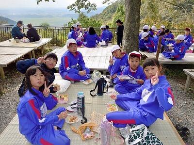 謙信平で綺麗な景色を見ながらお弁当を食べました。その後無事に太平少年自然の家に到着し、入所式を行いました。