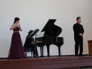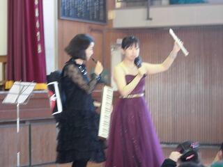 今年は音楽鑑賞会の年です。シュマンド・ド・ネイジュのフルート奏者の髙橋由起さん(栃木市出身)、ピアノ奏者の平田侑さんが来てくれました。さらに、バス・バリトン歌手の池田直樹先生もコラボとして参加してくれました。子供たちの知っている曲も多く一緒に歌ったり手拍子をとったりすることができました。特に、最後に赤麻小学校の校歌も演奏して歌ってくれて、大いに盛り上がりました。子供たちも大きな声で歌えました。