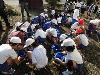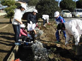 お昼休みにボランティアの方々に来ていただき、環境委員会の子供たちと一緒に球根を植えました。前回植えたパンジーの隣に植えました。来年の春にパンジーとともにきれいに咲きそろうのが今から楽しみです。