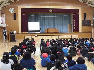 新しくなった体育館のステージを使って表彰が行われました。こどもたちは、様々な分野で頑張っています。引き続き校長先生から、節分としもつかれについての話がありました。こどもたちは真剣に耳を傾けていました。