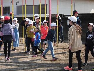竜巻に備えた避難訓練を行いました。防災頭巾をかぶり、窓ガラスから離れた場所にみんなでかたまり小さくなる避難をしました。真剣に取り組みました。