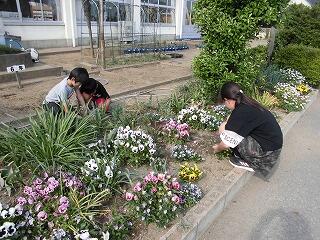 本日、昼休みに、環境委員会の子どもたちとボランティアさんで、花壇の整備を行いました。花壇を耕しながら、チューリップや水仙の球根を取り出したり、草を抜いたりしました。作業が終わると、全身汗でびっしょりでした。明日は、肥料入れと、花植えです。ボランティアさんには、またお世話になります。どうぞ宜しくお願いします。