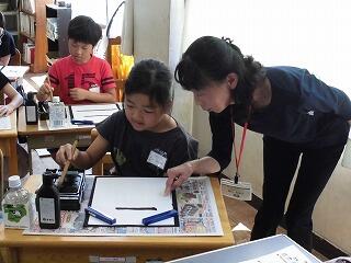 ボランティアさんがいらっしゃるお陰で、初めての習字の時間がスムーズに、しかも、楽しくできました。ありがとうございました。
