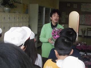 児童代表の挨拶を行い、花束を贈呈しました。