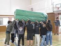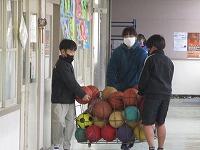 今日は、休み時間に、4年生と5年生と職員で、体育館の運動器具を片付ける作業をしました。
