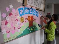 向かって右側には、在校生や職員からの桜のメッセージが、このあと貼られます。