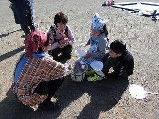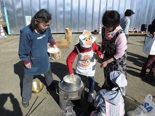 七輪に炭をおこしてお餅を焼いたり、お釜でご飯を炊いたりしました。こんがり焼けたお餅の香ばしさ、大きなお釜で火加減を調節しながら炊いたご飯の、良い香りとふっくらとしたお米のおいしさを十分堪能しました。