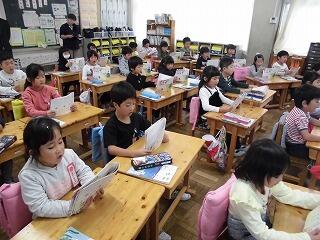 1年生の森田先生が、国語「くらべてよもう じどう車くらべ」の授業を行いました。1年生の手のあげ方が素晴らしいです。自分で読み取ったことを作業用紙にまとめていました。1年生の大きな成長を感じました。