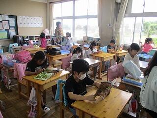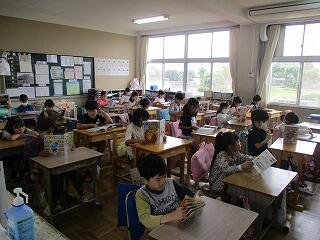 ランドセルの片付けが終わった人から、着席して読書開始。