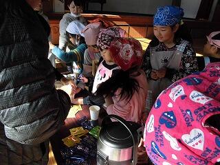 まずは、かまどで、薪に火をつけました。なかなか火がつかず手こずっていたグループもありましたが、ボランティアの方々の力で無事火がつきました。