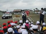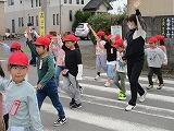 23日(火)は1・2年生が、横断歩道の渡り方や、駐車している車のそばを通るときの歩き方などを学びました。